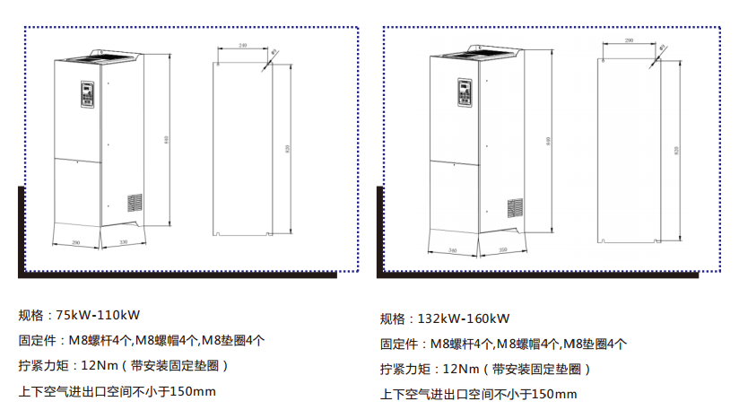 7、獨特雙風(fēng)道設(shè)計,功率模塊和控制單元彼此獨立散熱,提升了產(chǎn)品的可靠性,且支持并排安裝。